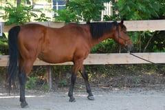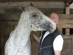 Der Liebling der Männer. Smart, cool und „schmusig“. Ein Pferd, mit eigenen Ideen…… Harlan bringt auch Männer dazu, ein Pferd zu knuddeln. Mit seiner ruhigen, überlegten und warmen Art, pirscht er sich ganz langsam an die Menschen heran, um sich dann ganz sanft aber dafür mit seiner vollen Präsenz in ihr Bewusstsein zu bringen. Nach dem Motto: Jetzt bin ich da, also bitte streicheln und kraulen. Harlan ist ein Geniesser und hat so seine Ideen, was denn nun alles spannend sein könnte. Etwa die aufgestellten Markierungskegel, um die nachher longiert werden sollte neu zu platzieren oder damit seine Kollegen anzustupsen. Die Plane am Boden zu untersuchen, evtl. kann man die Essen? Oder mit seinem Kollegen Lucky, pferdische Flausen auszuleben und dies vor allem dann, wenn man sich doch Bewegen sollte! Harlan ist einfach ein Pferd zum rundum gern haben.